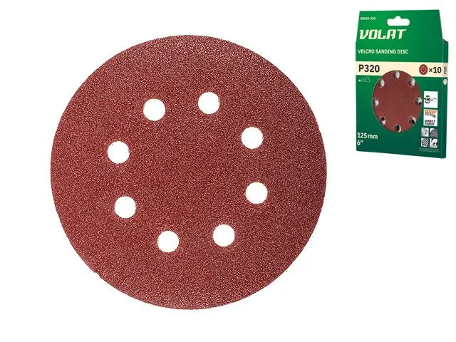 Шлифлист 125мм круг Р320 8 отв. 10шт. ВОЛАТ