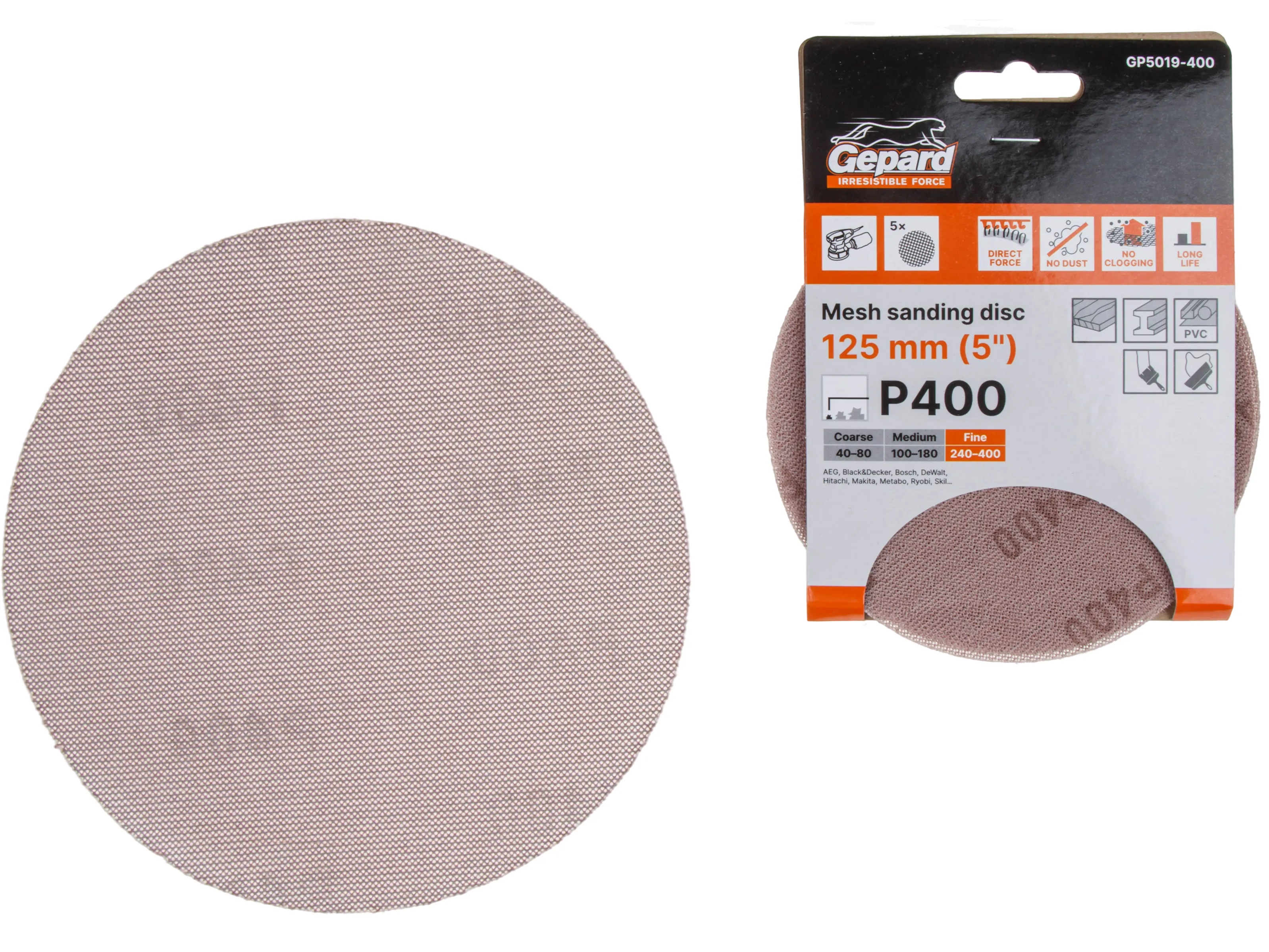 Шлифлист 125мм круг Р400 сетка, самосцепл. 5шт. GEPARD (GP5019-400)
