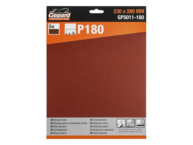 Шлифлист 230х280мм Р180 бум.осн. 5шт. GEPARD (GP5011-180)