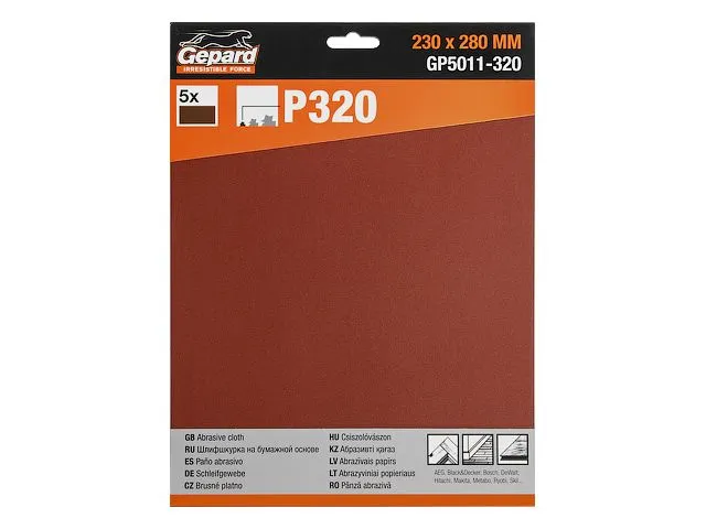 Шлифлист 230х280мм Р320 бум.осн. 5шт. GEPARD (GP5011-320)