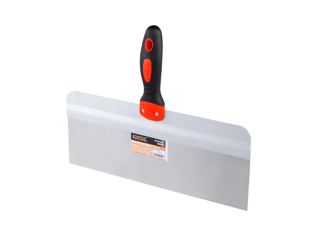 Фасадный шпатель - инструмент первой необходимости для специалиста по отделке и ремонту. Ровное жесткое полотно позволяет получать идеальный результат при нанесении шпатлевки или штукатурки на стены. Материал шпателя - нержавеющая сталь - не боится даже агрессивных сред, благодаря чему шпатель прослужит долго.