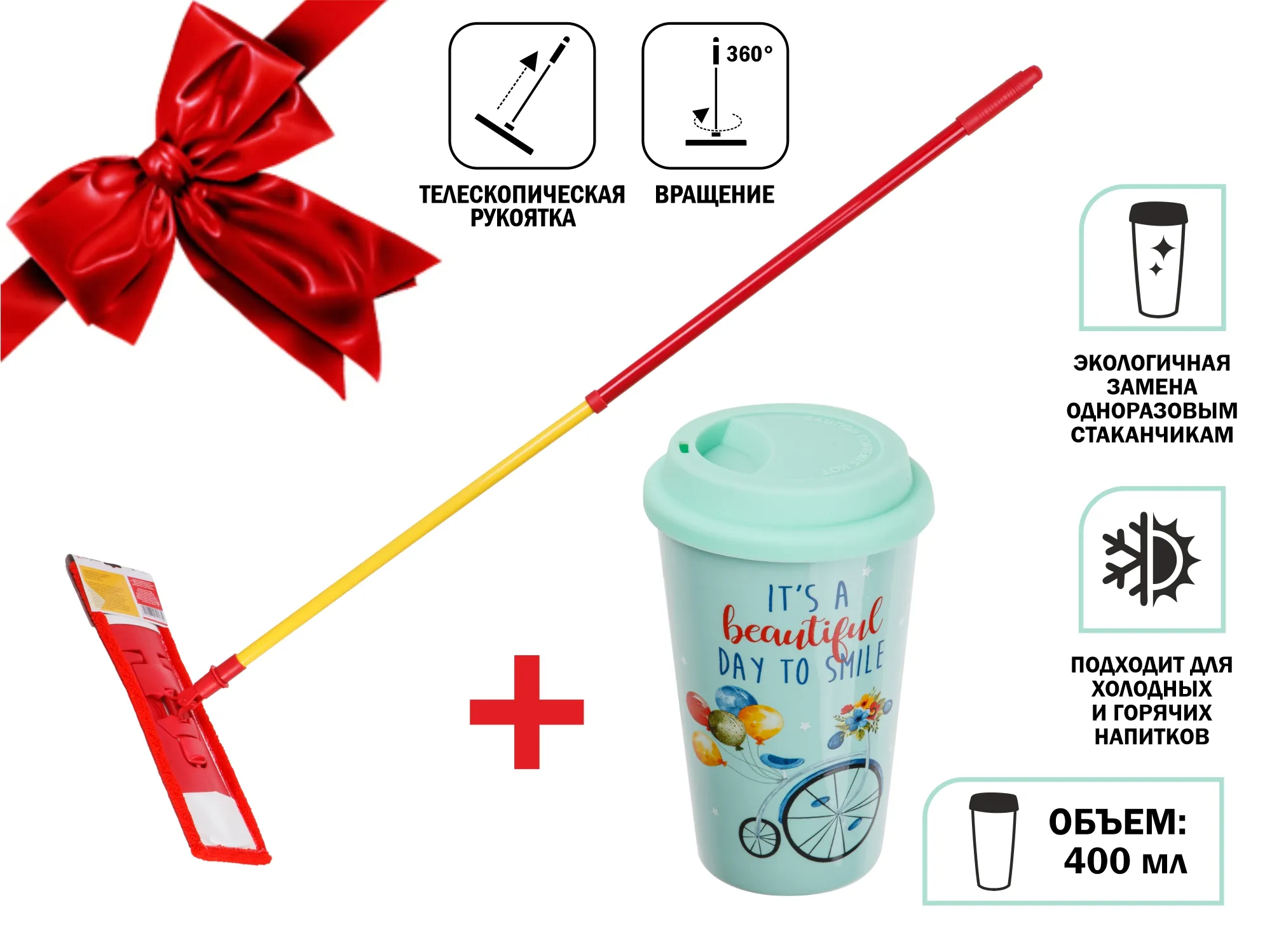 Швабра для пола с насадкой из микрофибры,Джайв+кружка керамическая,400 мл,PERFECTO LINEA