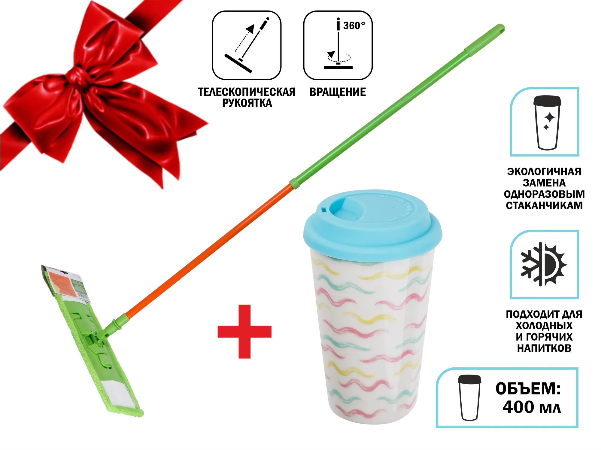 Швабра для пола с насадкой из микрофибры,Макарена+Кружка керамическая,400 мл,PERFECTO LINEA