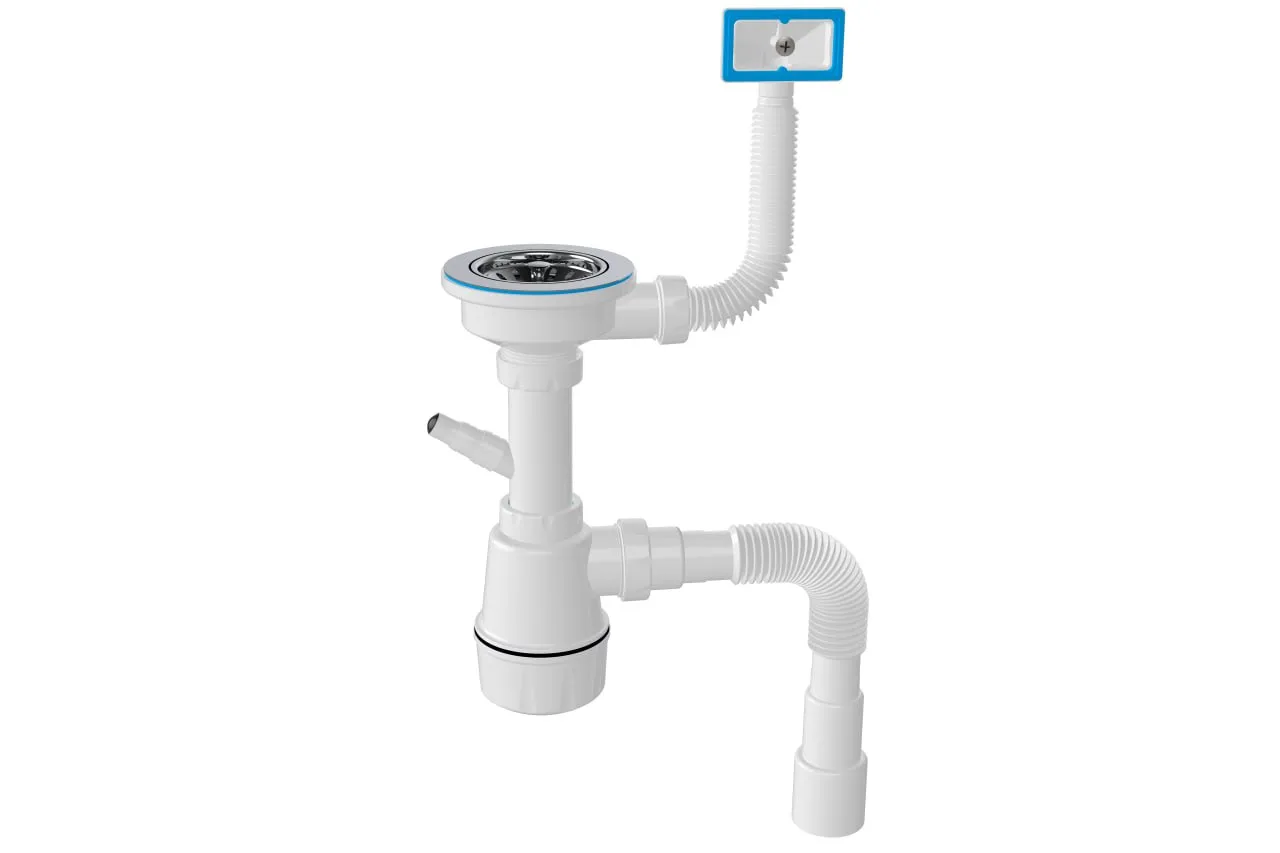 Сифон для кухни с прямоугольным переливом , выпуск 3 1/2, с гибкой трубой 1 1/2" - 40/50мм, AV Engin