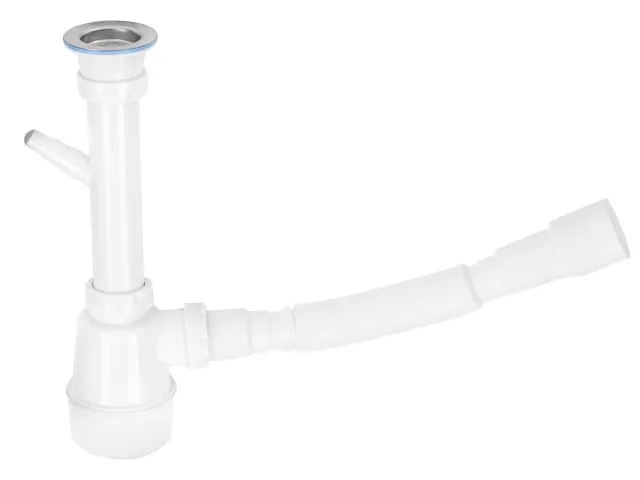 Сифон для кухни с выпуском 70мм, с отводом для стир. маш., с гибкой трубой 1 1/2" - 40/50, AV