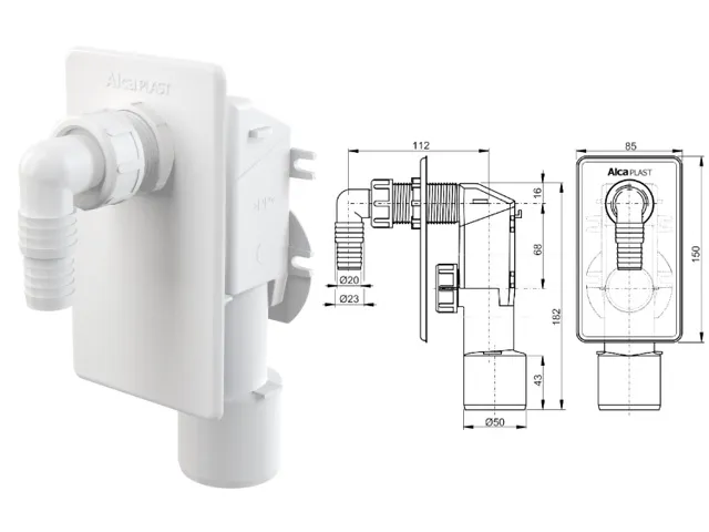 Сифон для стиральной машины под штукатурку, белый, Alcaplast