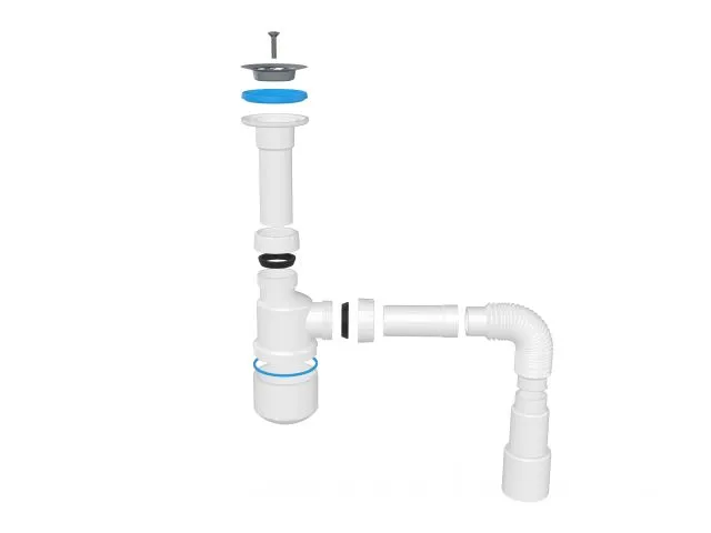 Сифон для умывальника с литым выпуском 64мм, с гибкой трубой 1 1/4", AV Engineering