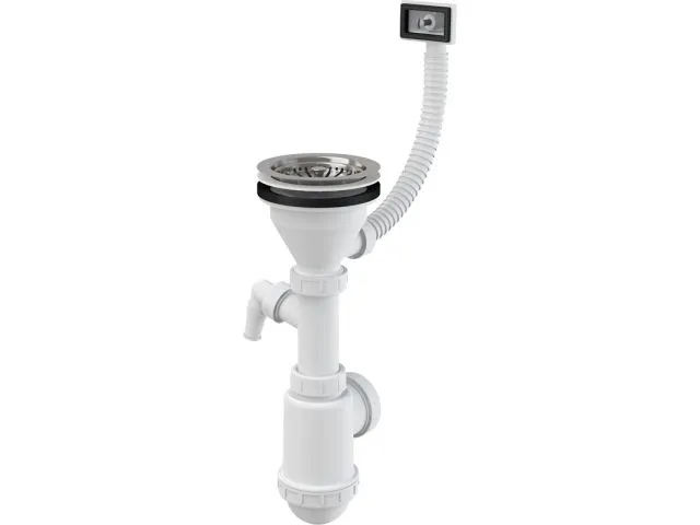 Сифон для умывальника с нержавеющей peшeткой D115, гофропереливом и подводкой, Alcaplast