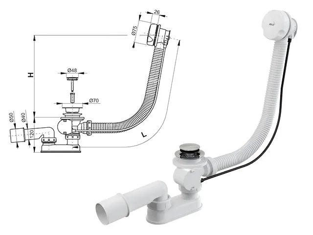 Сифон для ванны автомат комплект, белый, Alcaplast