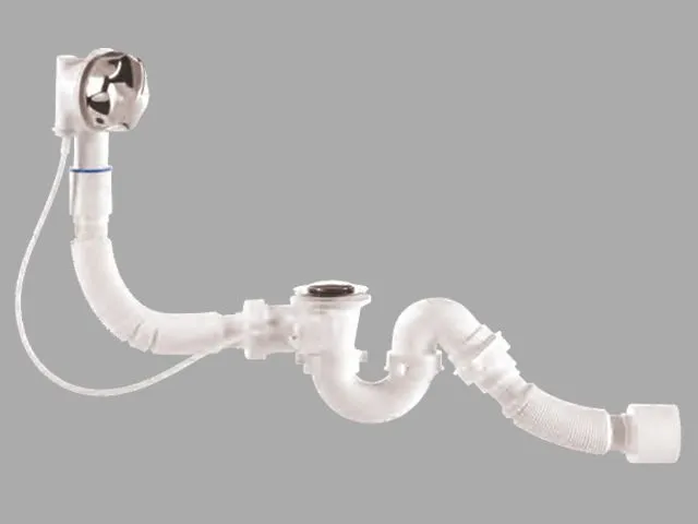 Сифон для ванны автомат U-образный с выпуском и переливом (Lt), с гибкой трубой 40х40/50, BAKIMAY