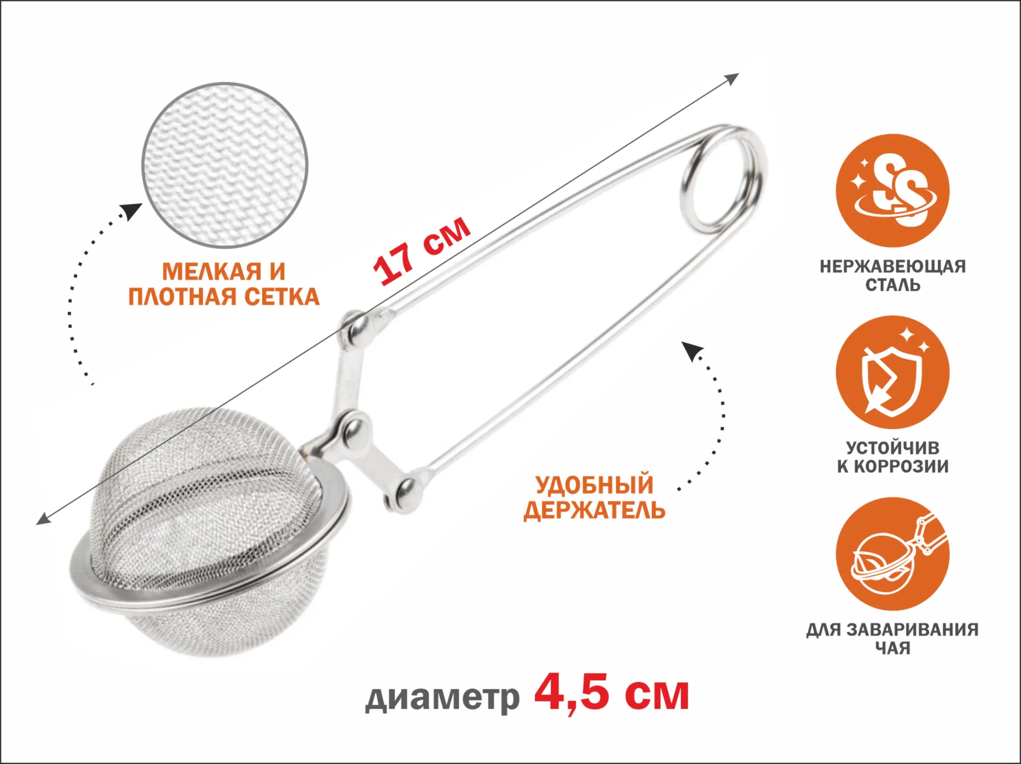 нержавеющая сталь, диаметр 4,5 см