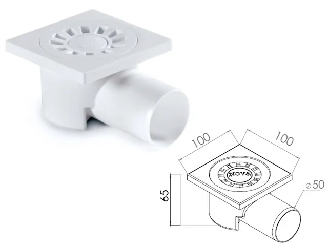 Сливной трап горизонтальный D 50 решетка пласт. 100х100 мм, NOVA