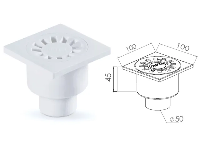 Сливной трап вертикальный D 50 решетка пласт. 100х100 мм, NOVA