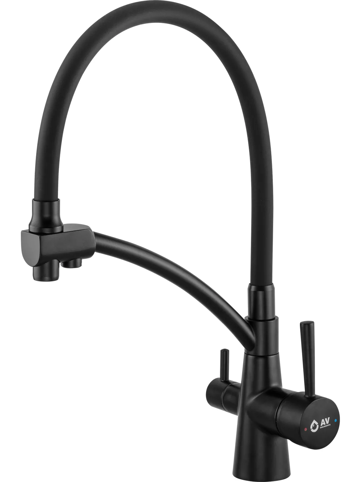 Смеситель для кухни (Lt) D35, серия LUX с краном для пит. воды черный AV Engineering