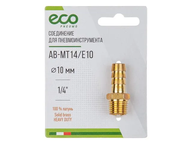 Соединение нар. резьба 1/4" х елочка 10 мм (латунь) ECO