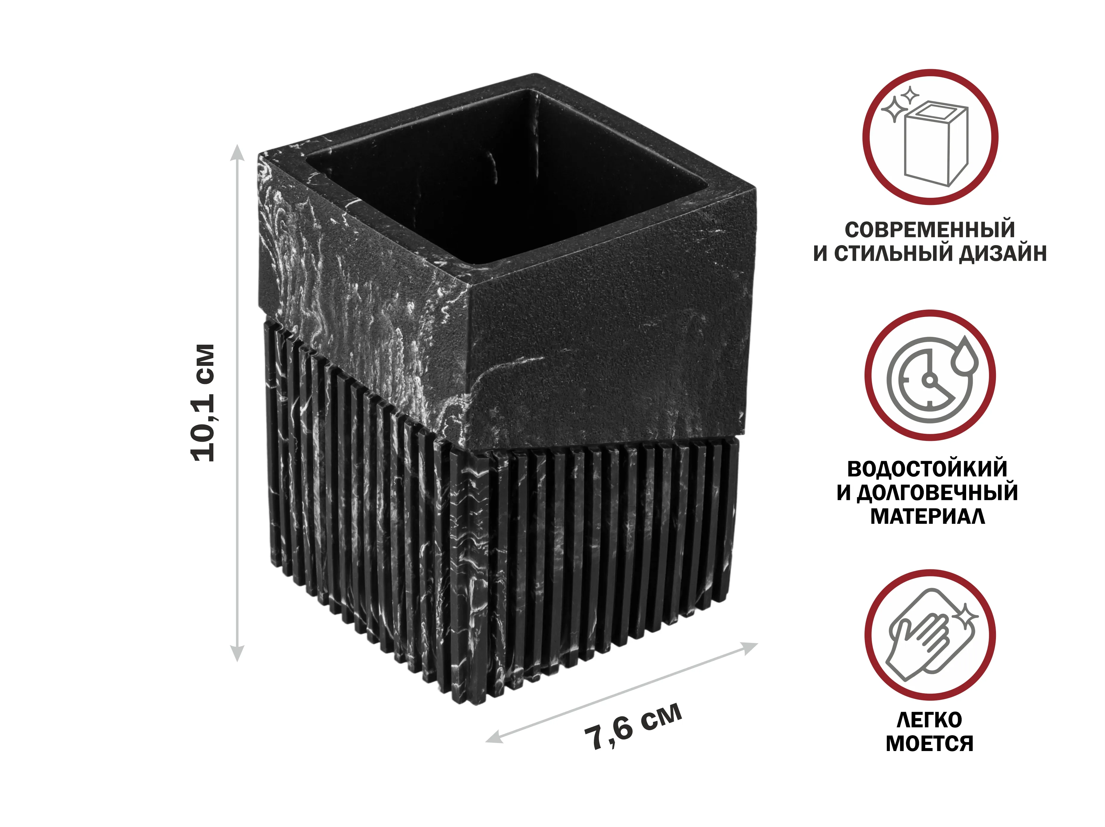 Стакан для зубных щеток ELEMENT MARBLE, черный, PERFECTO LINEA