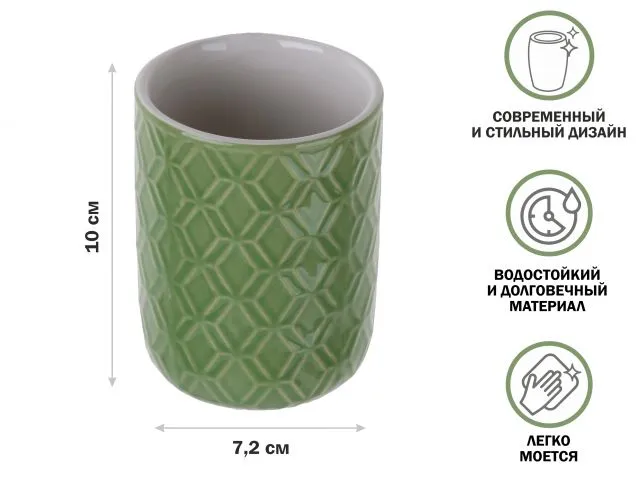 Превосходный внешний вид - стакан из керамики создает роскошный и стильный акцент в ванной комнате, добавляя нотку изыска и элегантности к общему дизайну. Прочный и долговечный материал - керамическая конструкция гарантирует долговечность стакана, не подверженного повреждениям или царапинам в результате ежедневного использования.