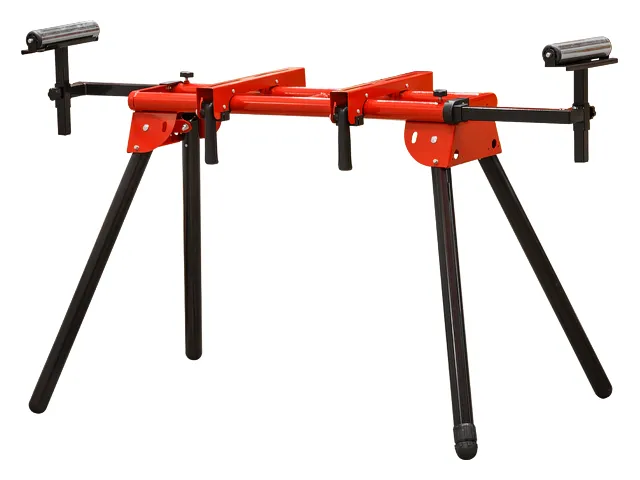 Стол WORTEX MT 7625 используется для установки на него торцовочных пил и работы с длинными заготовками. Представляет собой прочную и надежную конструкцию из стальных труб с перемещаемыми кронштейнами для крепления пилы. Кронштейны фиксируются в одно нажатие. Также имеются дополнительные роликовые опоры, которые имеют регулировку по высоте и длине с максимальным вылетом ролика 81.5 см (2.5 метра макс. длина стола с опорами). Выдерживает до 150 кг нагрузки. Стол имеет складную конструкцию и при хранении не занимает много места.