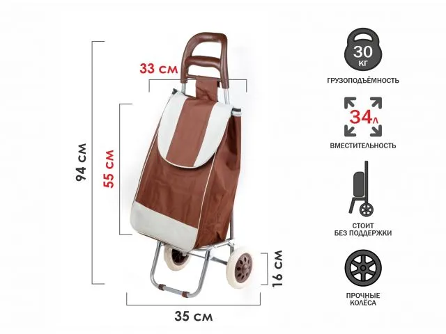 Сумка-тележка хозяйственная на колесах 30 кг, коричневая, полоска, PERFECTO LINEA