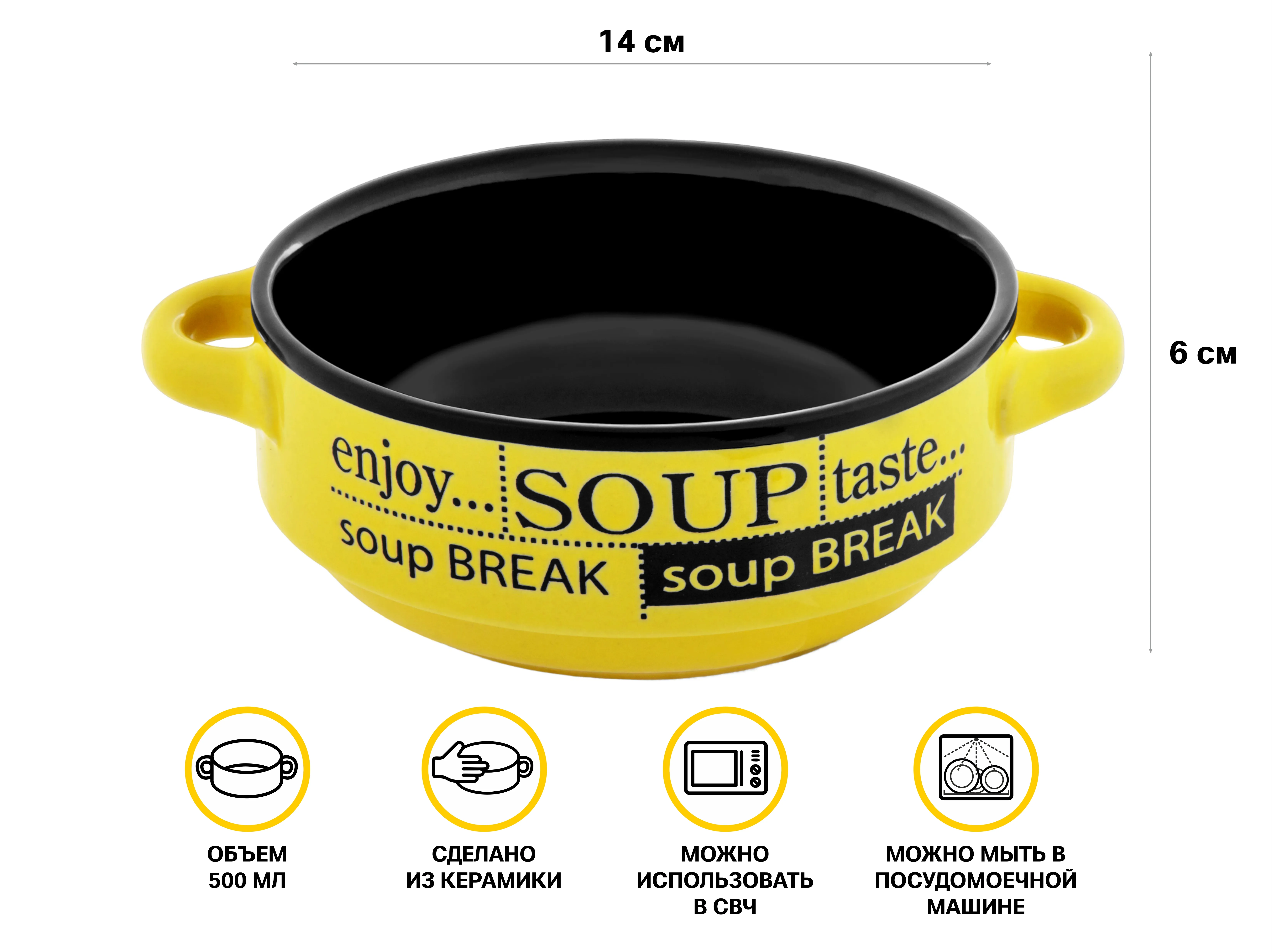 Супница керамическая, 140 мм, круглая, серия Гаспачо, черно-желтая, PERFECTO LINEA