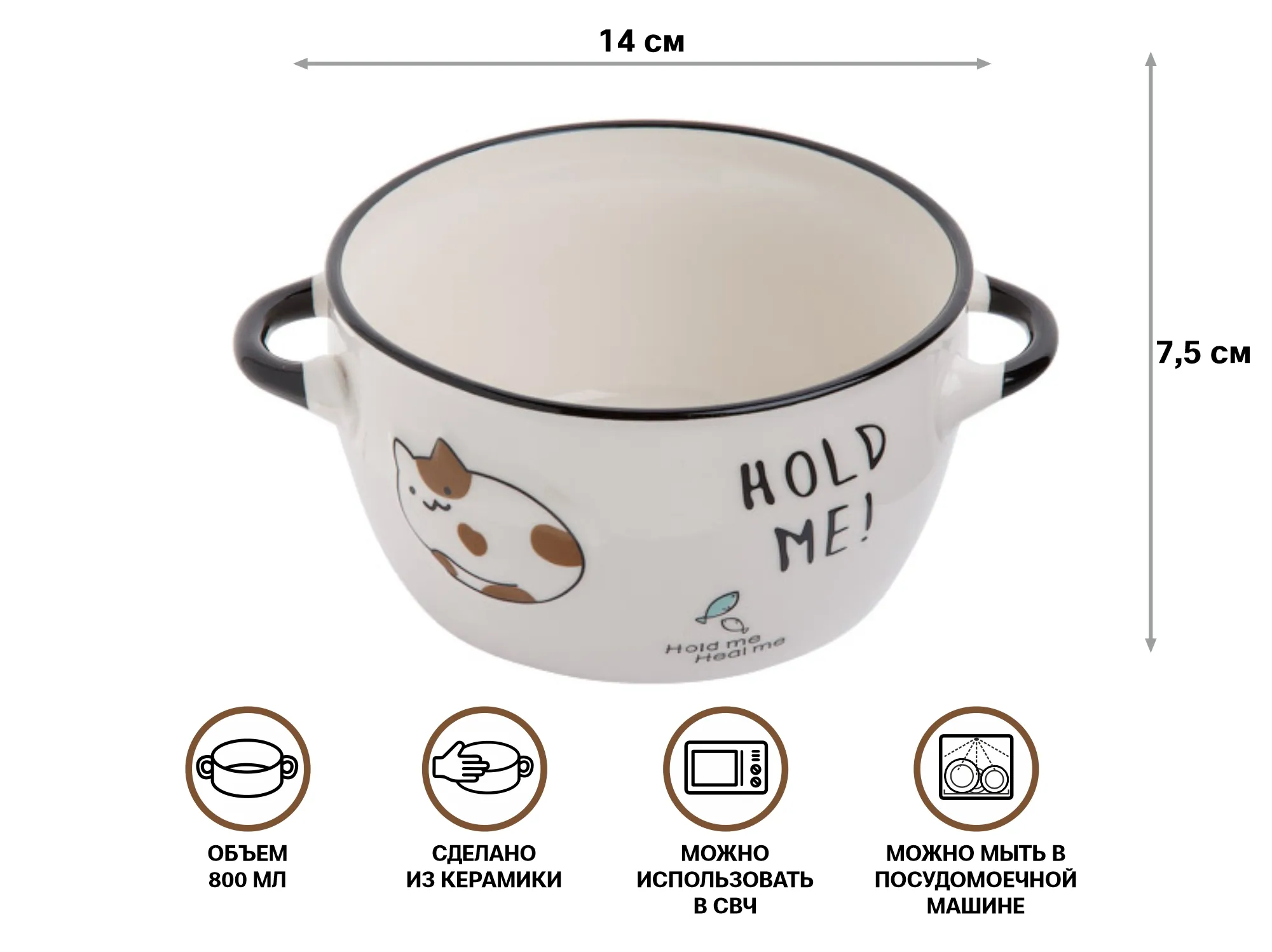 Супница керамическая, 140 мм, круглая, серия Миу-Миу, белый кот, PERFECTO LINEA