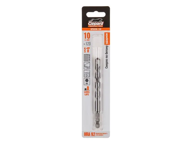 Сверло по бетону 10х120мм шестигр. GEPARD (GP0230-120)