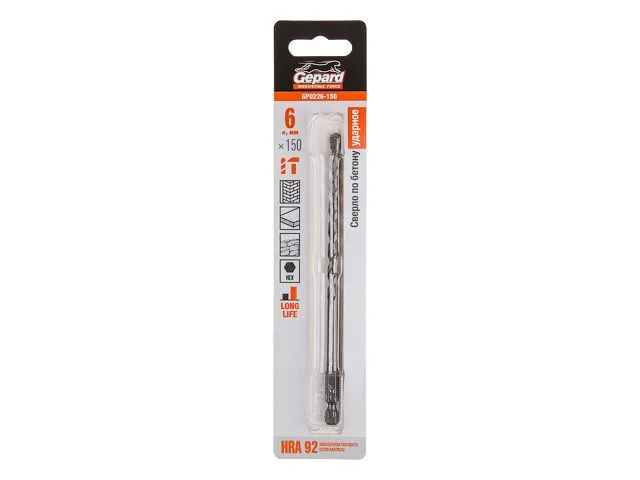 Сверло по бетону 6х150мм шестигр. GEPARD (GP0226-150)