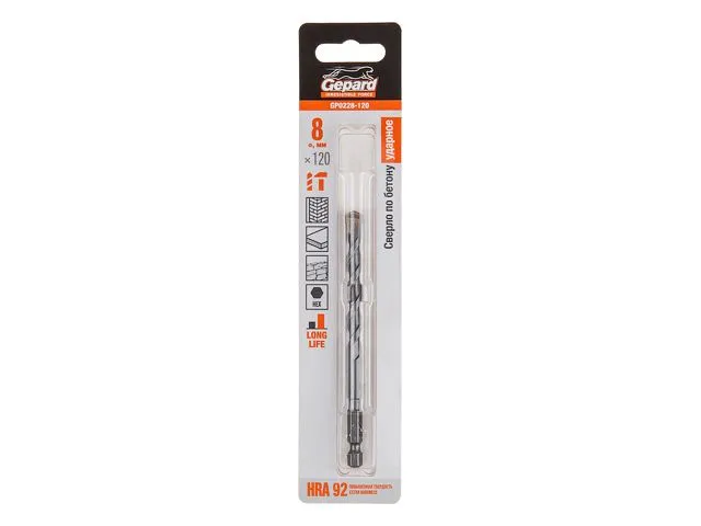 Сверло по бетону 8х120мм шестигр. GEPARD (GP0228-120)