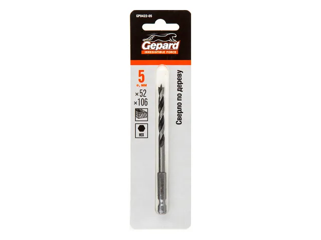 Сверло по дереву 5х52х106 шестигр. GEPARD