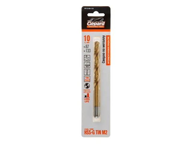 Сверло по металлу ц/х 10.0х87х133 мм HSS TIN GEPARD