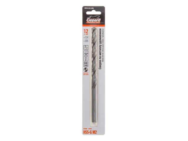 Сверло по металлу ц/х 12.0х134х205 мм удлиненное HSS-G GEPARD