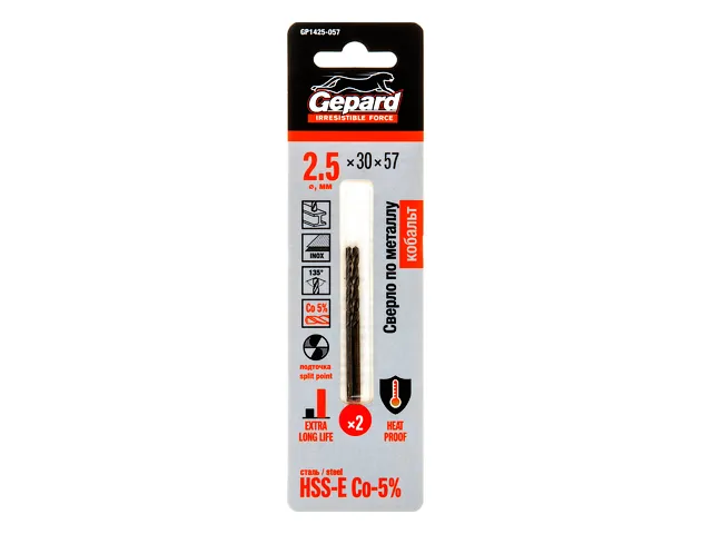 Сверло по металлу ц/х 2.5х30х57 мм HSS-Co, комплект из 2-х шт GEPARD