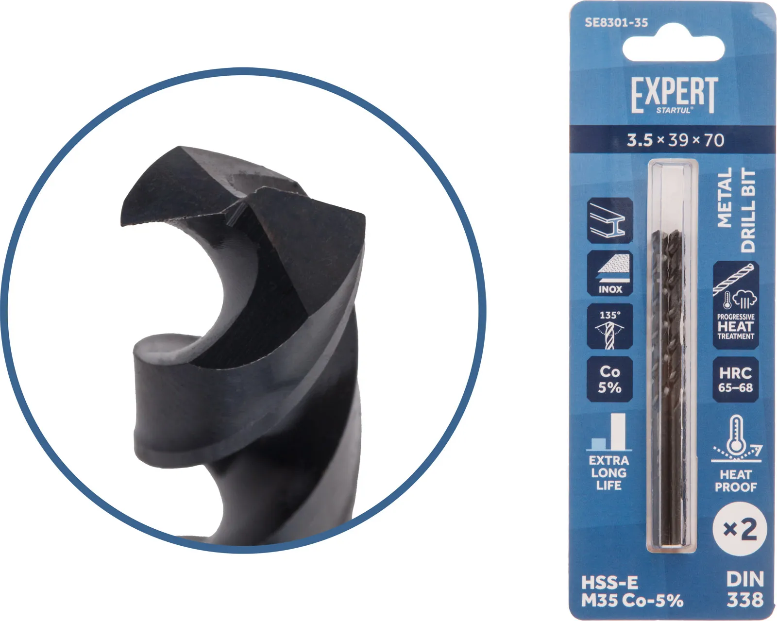 Сверло по металлу ц/х 3.5х39х70 мм HSS-Co, комплект из 2-х шт Black EXPERT STARTUL