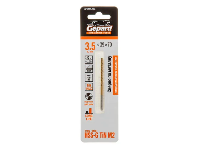 Сверло по металлу ц/х 3.5х39х70 мм HSS TIN GEPARD