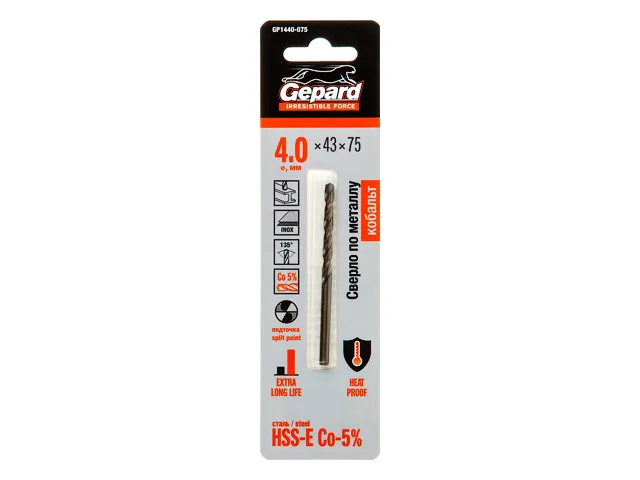 Сверло по металлу ц/х 4.0х43х75 мм HSS-Co GEPARD