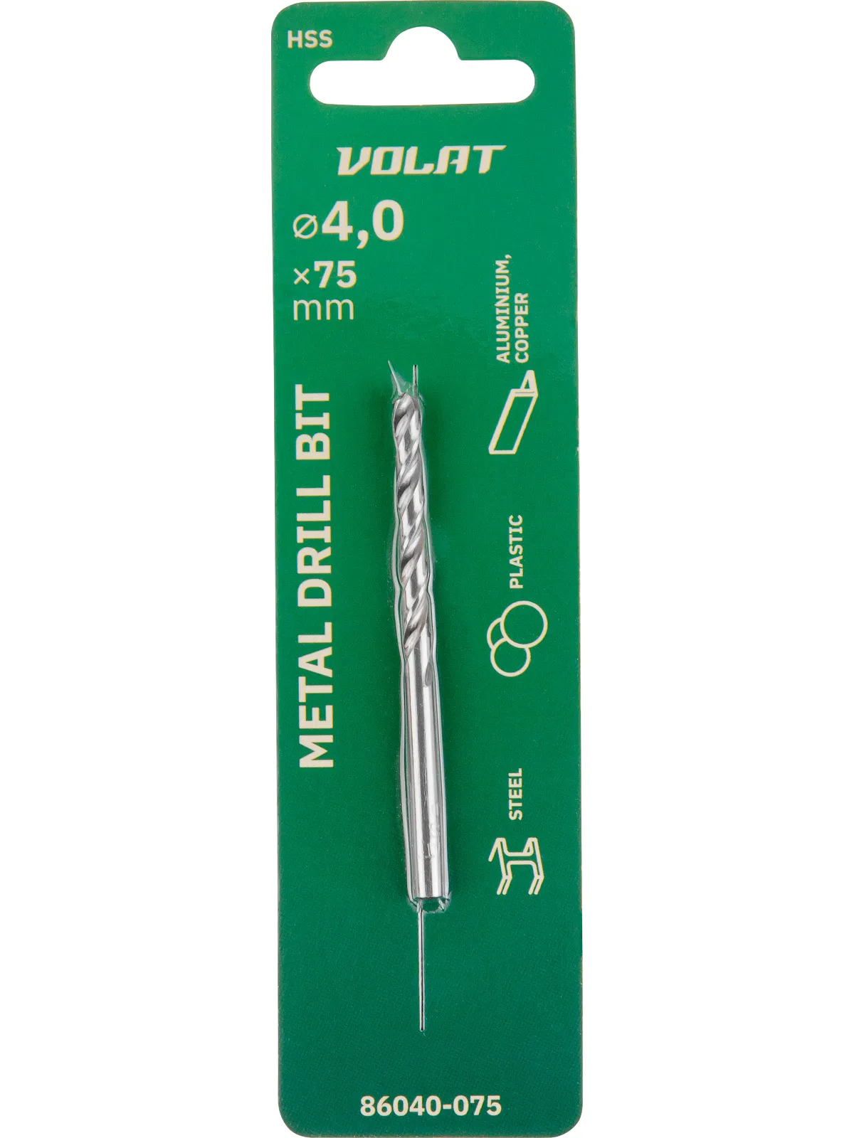 Сверло по металлу ц/х 4.0х43х75 мм HSS ВОЛАТ