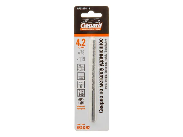 Сверло по металлу ц/х 4.2х78х119 мм удлиненное HSS-G GEPARD