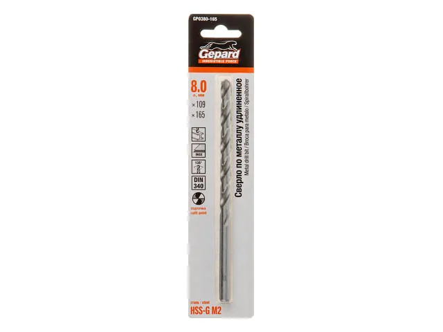 Сверло по металлу ц/х 8.0х109х165 мм удлиненное HSS-G GEPARD