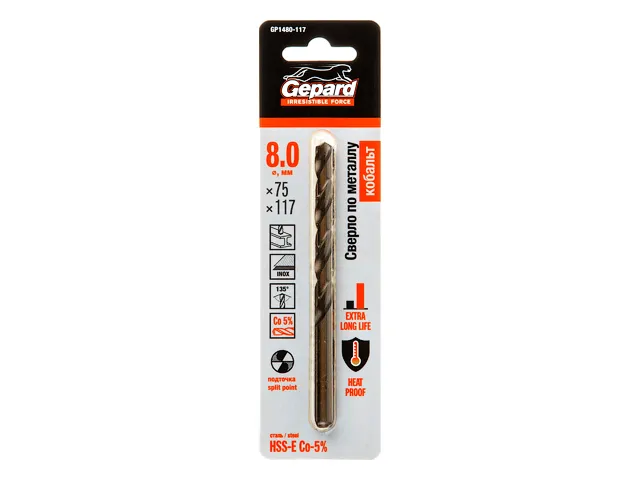 Сверло по металлу ц/х 8.0х75х117 мм HSS-Co GEPARD