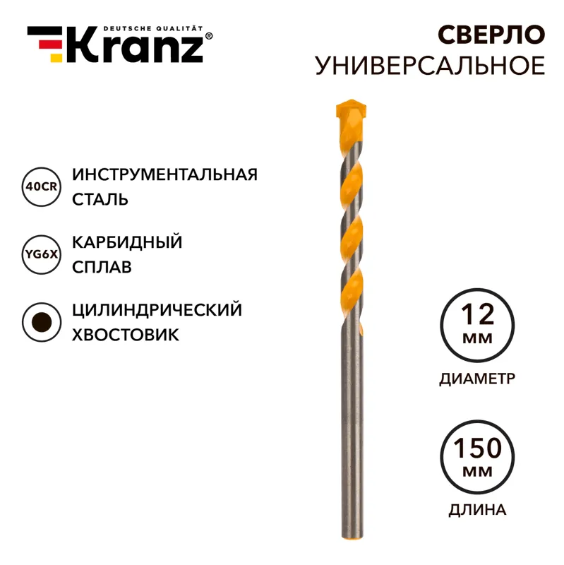 Сверло универсальное 12х150 твердосплавное KRANZ