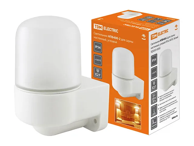 Светильник НПБ400-2 для сауны настенный, угловой, IP54, 60 Вт, белый, TDM