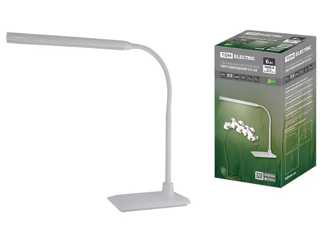 Светильник светодиодный настольный СН-28, сенсор-диммер, 220 В, 6 Вт, 5000 К, белый TDM