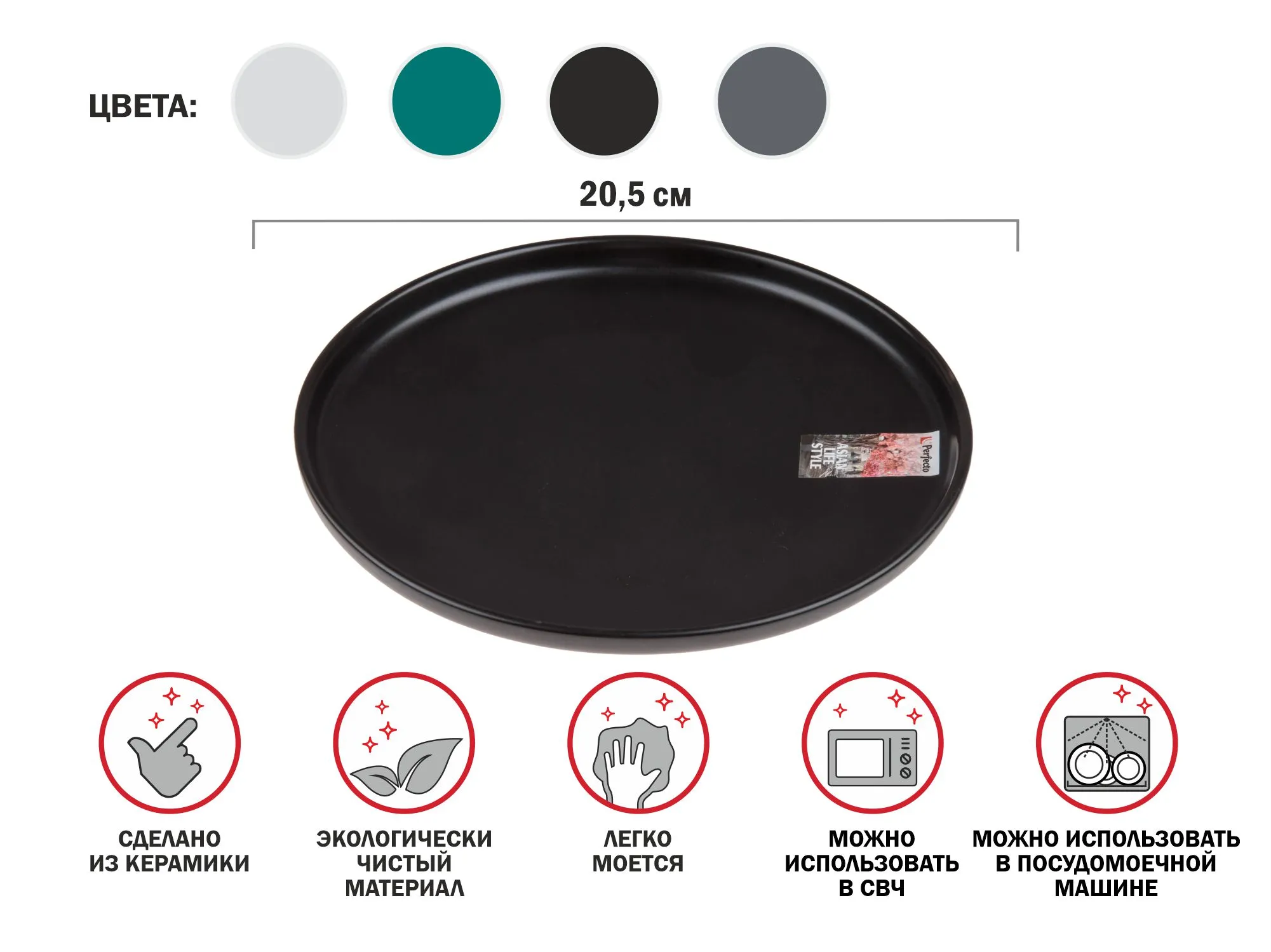Тарелка десертная керамическая, 20.5 см, серия ASIAN, черная, PERFECTO LINEA