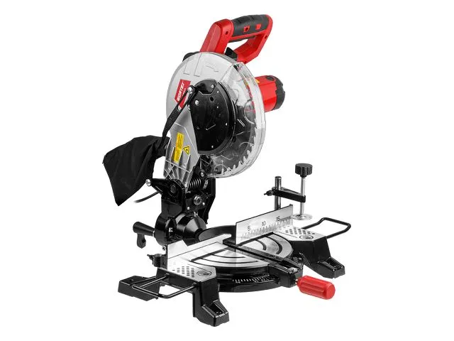 Пила сочетает в себе оптимальный набор функций для удобной и быстрой работы. Имеется система пылеудаления, лазерный указатель для более точного реза, система удобного зажима заготовки, точный рез. Быстрая регулировка глубины и ширины реза. Мощный 1500 Вт двигатель обеспечивает комфортную и продуктивную работу. А наличие ребер жесткости в основании придает дополнительную мощность конструкции, что очень важно для торцовочной пилы. Кроме того, пила оснащена удлинительными опорами для обработки длинных заготовок.