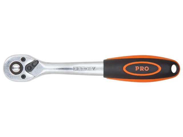 Данная трещотка имеет рукоятку эргономичной формы, изготовлена из хромованадиевой стали. Трещоточный механизм с реверсом и 72 зубьями обеспечивает исключительную мягкость и плавность в работе.