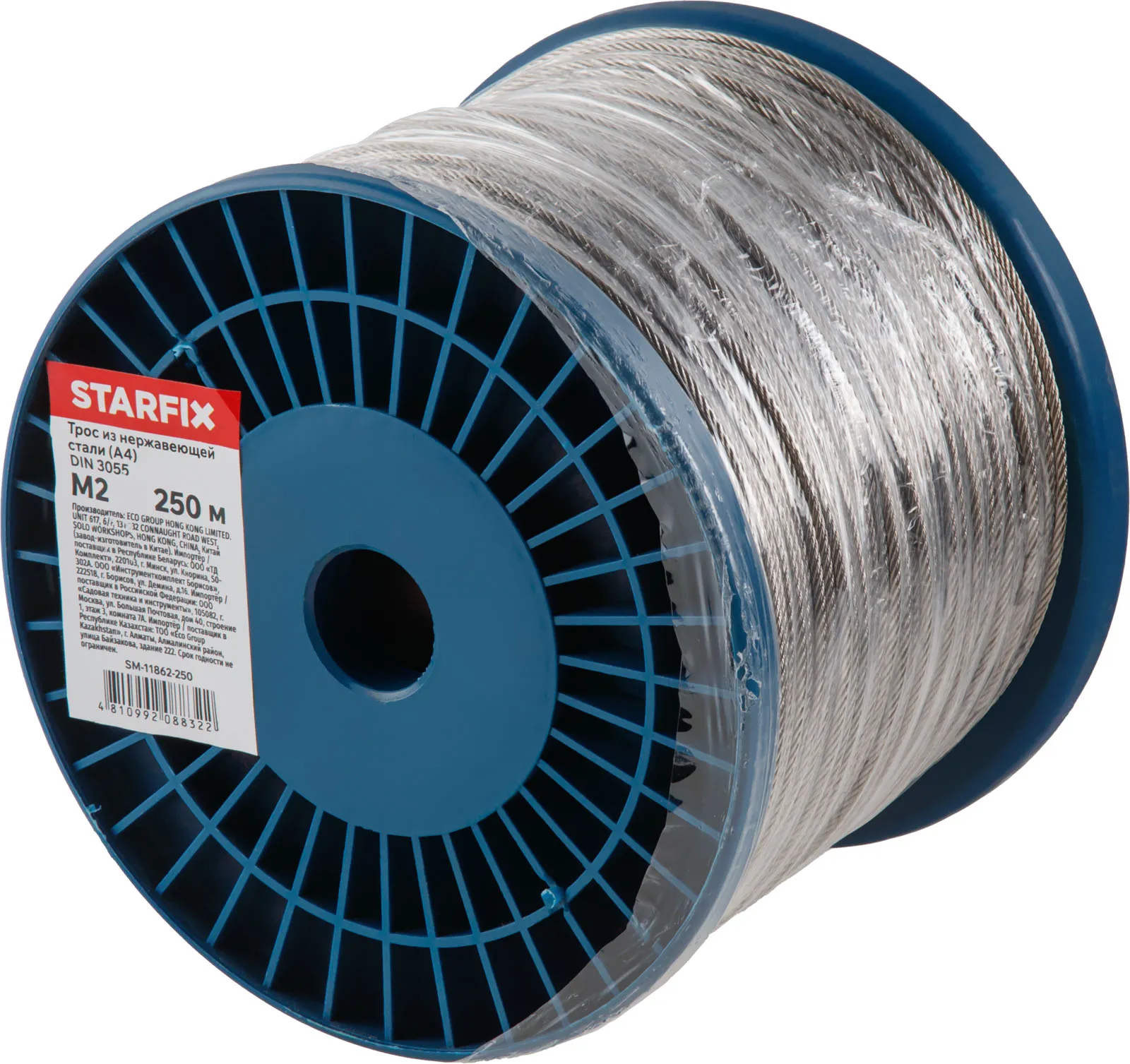 Трос М2 нерж.сталь (А4), DIN 3055 (бухта 250м) STARFIX