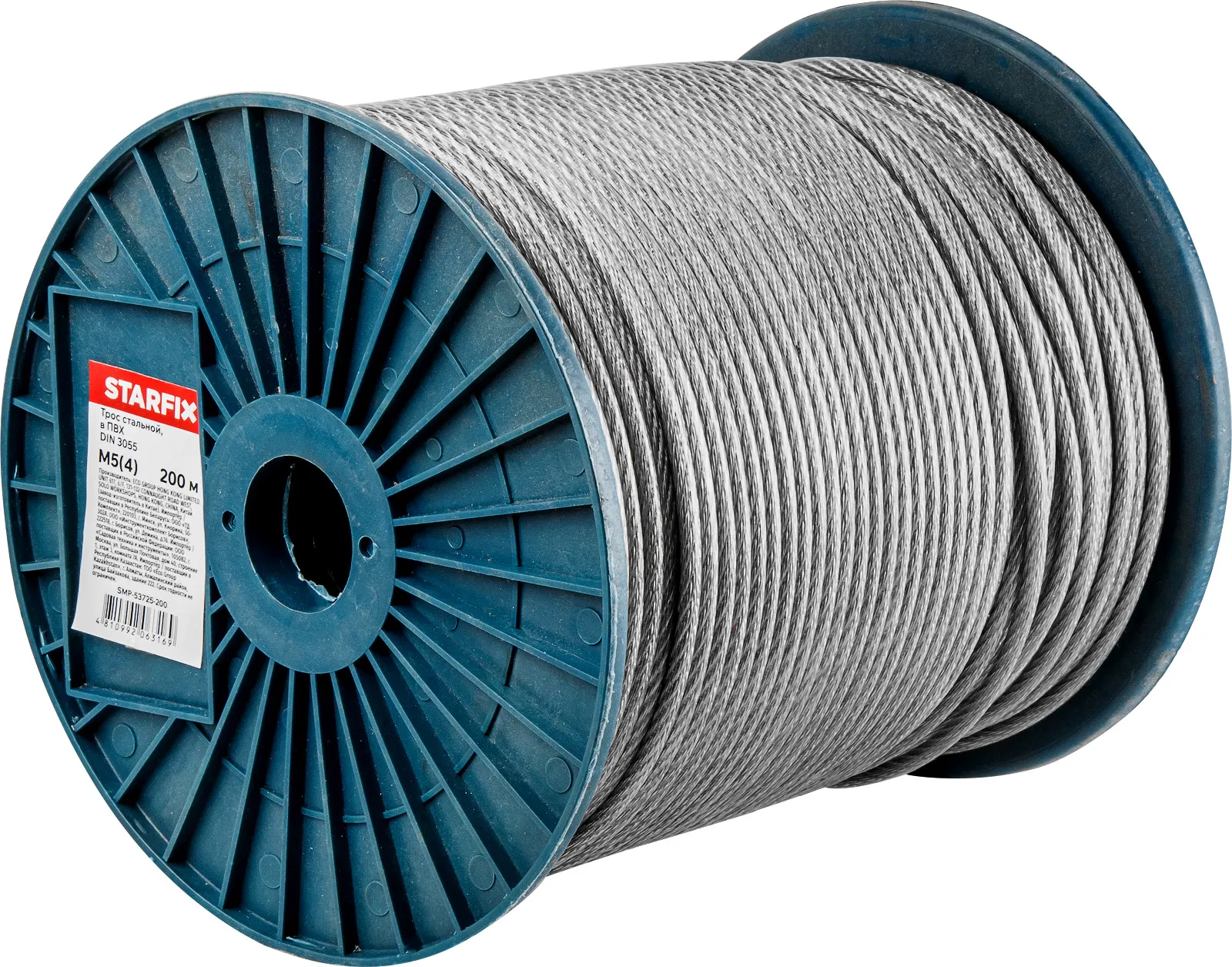Трос стальной в ПВХ М5(4) DIN 3055 (бухта 200 м) STARFIX