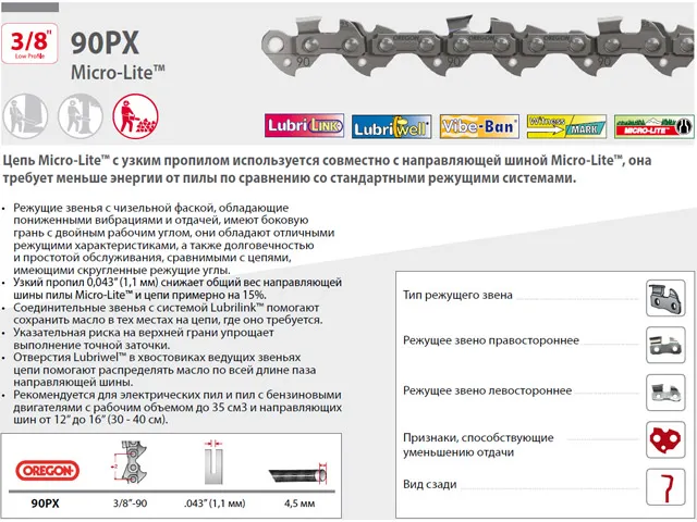 Цепь 40 см 16" 3/8" LP 1.1 мм 57 зв. 90SG (в блистере) OREGON