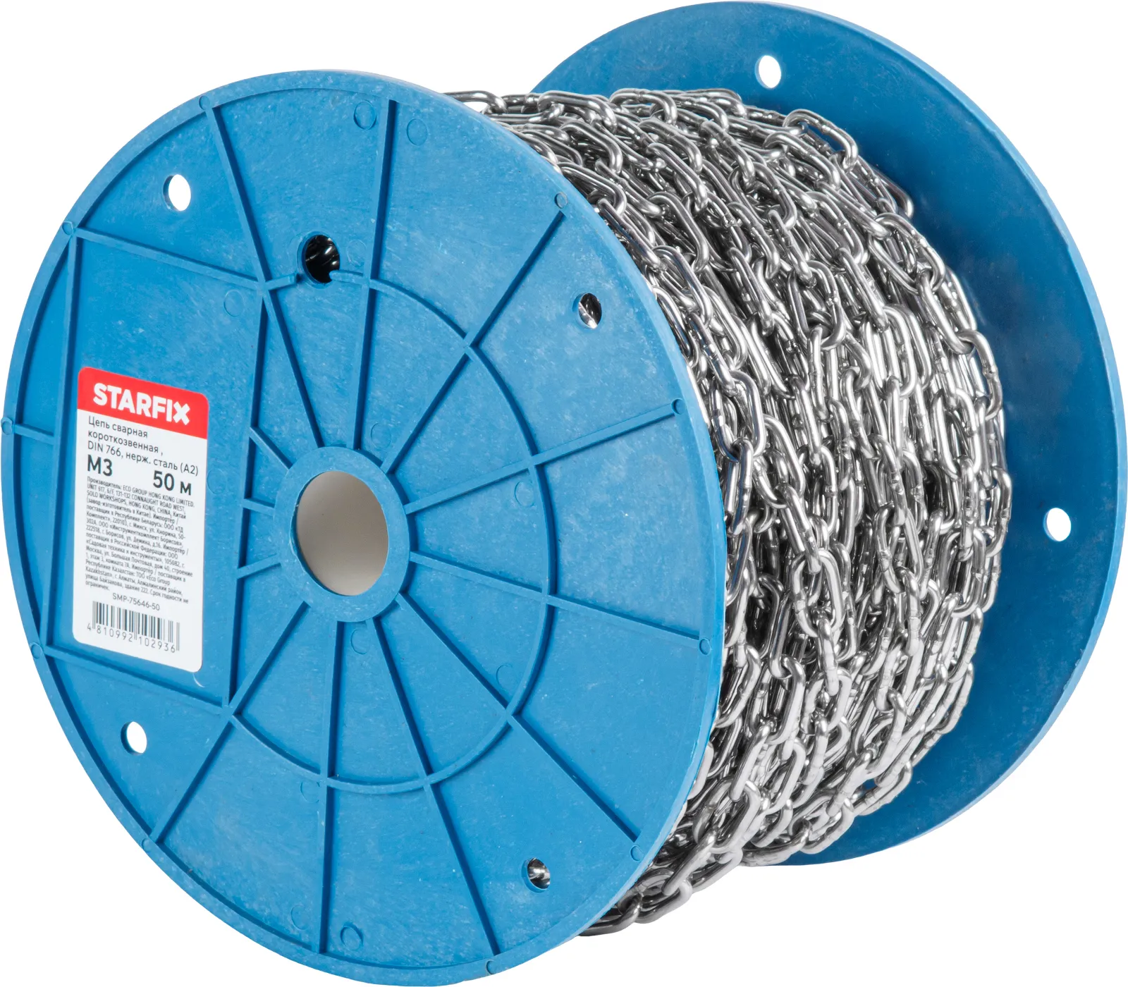 Цепь сварная короткозвенная М3 нерж.сталь (А2), DIN 766 (бухта 50м) STARFIX