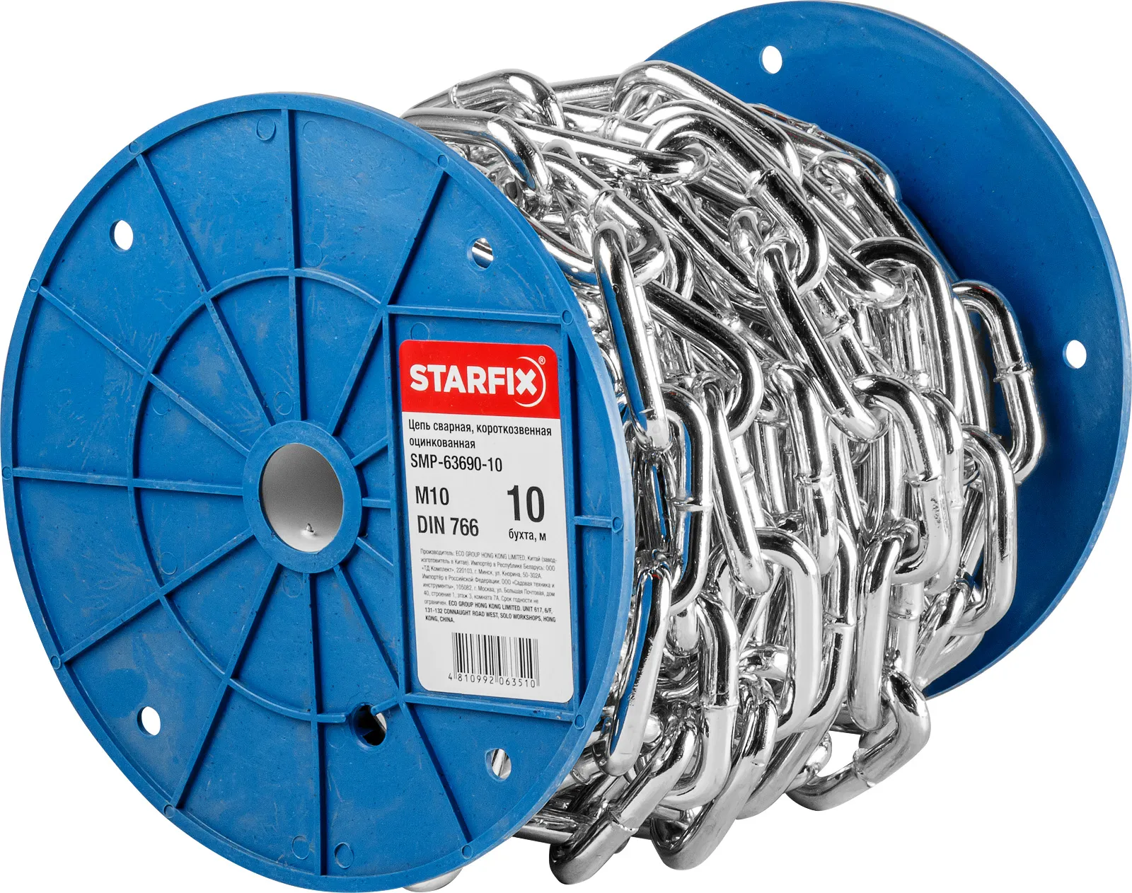 Цепь сварная короткозвенная, оцинк. М10 DIN 766 (бухта 10 м) STARFIX